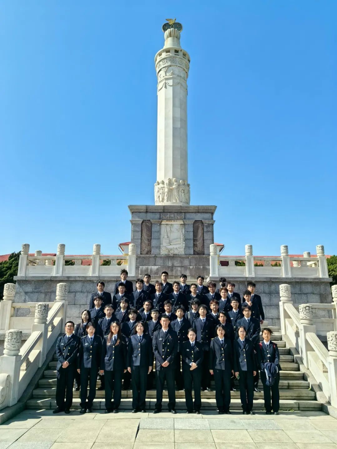 参观旅顺博物馆后,指导员带领同学们来到了园区内的“中苏友谊纪念塔”。在这里,指导员张煜杭为同学们讲解了苏联的建立、十月革命以及马克思主义是如何传到中国等一系列和党有关的知识。人工智能学院预备党员和入党积极分子认真听讲,对党的历史有了更加全面地理解和认识。