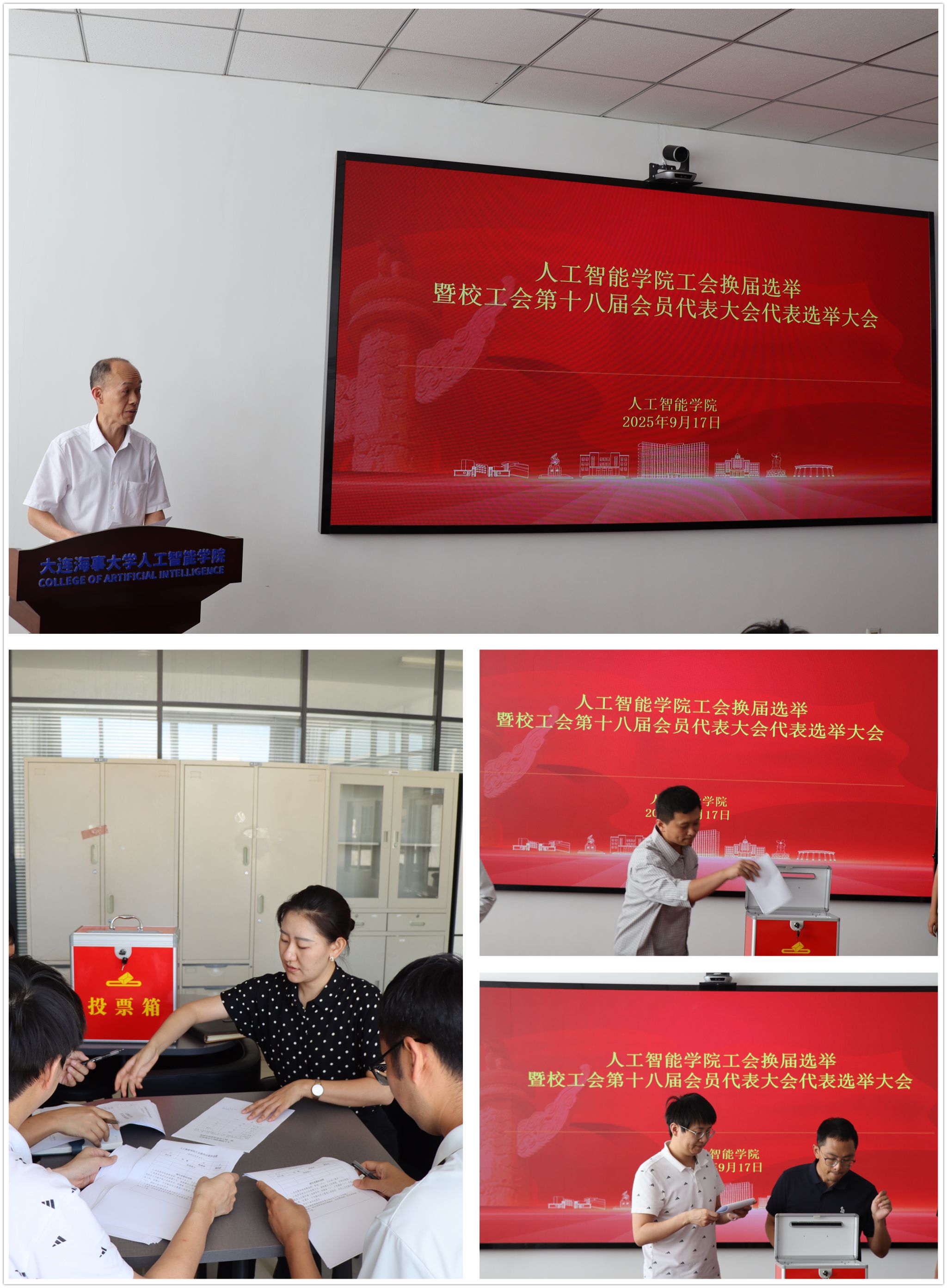 按照学校工会相关通知及工作要求,9月17日,人工智能学院召开全体会员大会,完成了学院工会换届选举及校工会第十八届会员代表大会代表选举工作。会议由学院院长刘洪波同志主持。